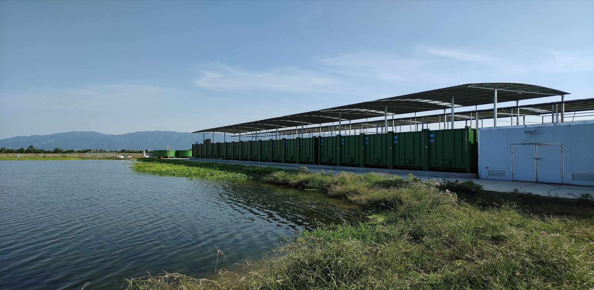 集裝箱式養(yǎng)殖系統(tǒng)采用 20 呎定制化“集裝箱”,尺寸是 6.1 米 *2.4 米 *2.8 米,養(yǎng)殖水體 25 立方米,占地面積為 15 平方米 ,配有納米增氧管(增氧)、出魚口(收魚)、集污槽(排污)、天窗(觀察投喂飼料)、固液分離器(尾水處理)等功能構(gòu)件。